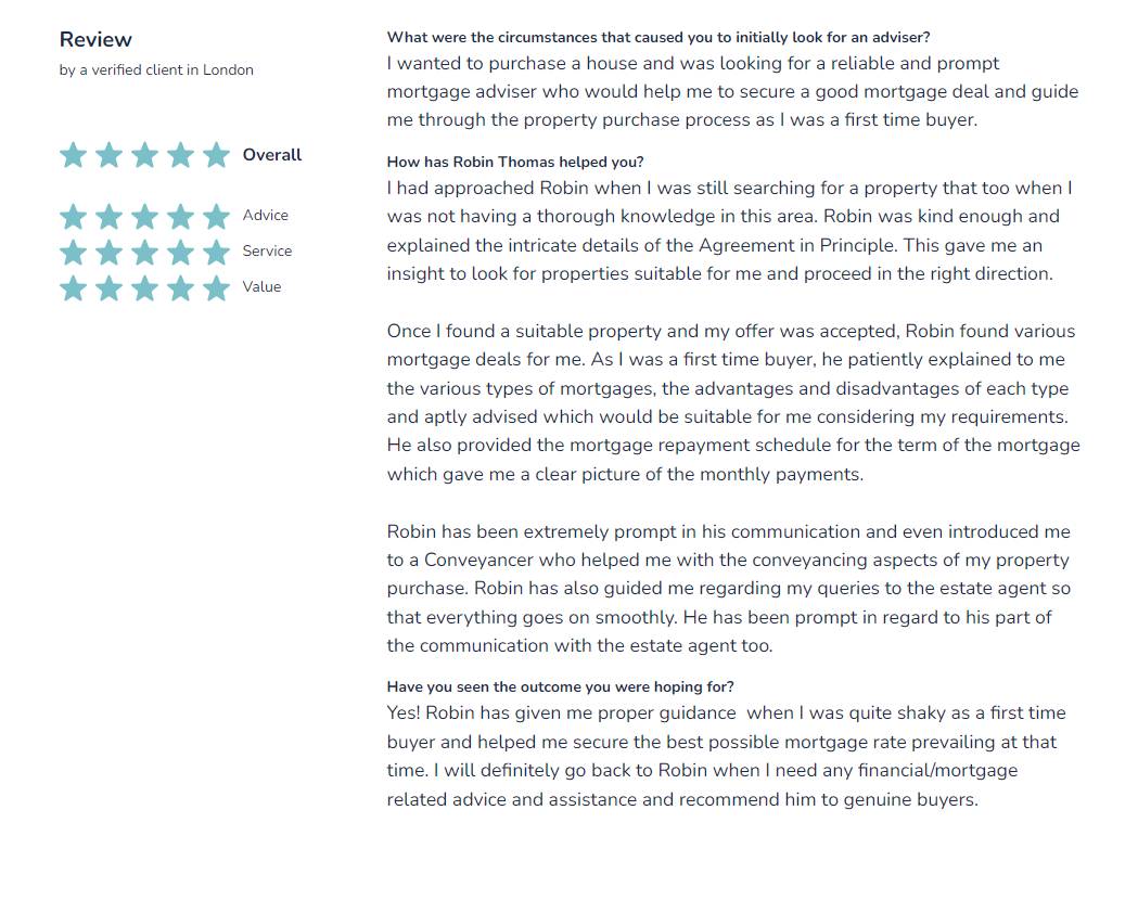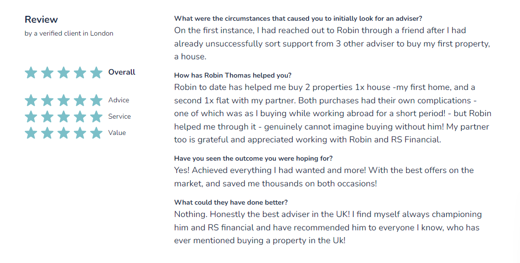 For prospective clients, these reviews provide reassurance and establish credibility, crucial factors in the decision-making process. The constructive feedback we receive allows us to fine-tune our services, ensuring they meet the unique needs of each client. In an industry where personalised and tailored advice is key, these reviews are a clear indicator of our dedication to excellence in service. Above all, they reinforce our determination to uphold the high standards that RS-Financial is recognised for in the mortgage brokerage sector.